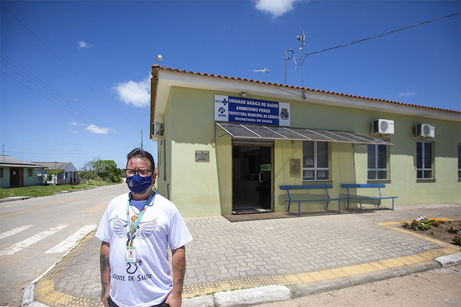 A quase dois mil quilômetros de distância, em Cerrito, Rio Grande do Sul, não é diferente com o Cleber Correia, 45. São 10 anos de profissão e hoje um dos 16 agentes comunitários que atendem o município de 6 mil habitantes. Em sua responsabilidade há 121 famílias – antes de sua microárea de atendimento ser ampliada eram 147 –, entre elas há aqueles que esperam religiosamente o dia da visita de Cleber, quando sai de casa em casa com sua motocicleta, cujo barulho já é de longe reconhecido pelas famílias. “Têm pessoas que realmente esperam só pelo dia da minha visita. Que é o dia com quem eles podem conversar, desabafar e contar sobre tudo que têm. As pessoas que eles têm mais acesso é com a gente. Isso é muito legal, eu gosto porque me deixa bastante ligado com aquela família”, ressalta ele que é grato pela relação de confiança que constrói todos os dias com os moradores.