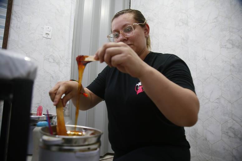 Com seis anos na área de depilação e mais recentemente como esteticista, Jenifer Laranjeira, de 34 anos, está sempre em busca de atualização profissional e oferece desde depilação a serviços como limpeza de pele e massagens corporais. Os atendimentos, que começaram na própria casa, partiram para salões de beleza e atualmente ela divide horários entre um estabelecimento comercial no Centro e os agendados no endereço de clientes.