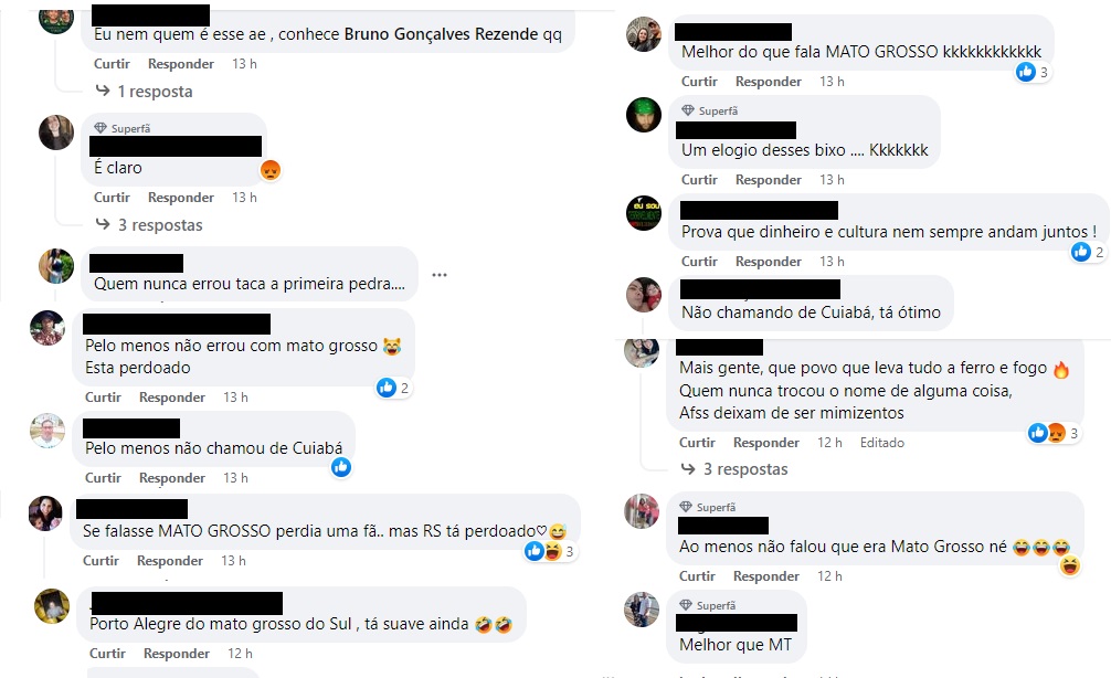A falha logo começou a gerar comentários entre os moradores. Também no Twitter, algumas manifestações chamaram atenção. Com bom-humor e levando na esportiva, houve quem dissesse sobre a gafe do humorista: “Melhor chamar de Porto Alegre do que Cuiabá“.