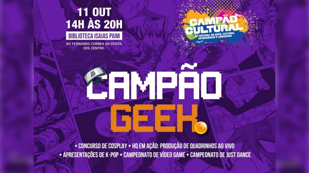 Além disso, temos encontros e minieventos promovidos por comércios locais. “Neste caso, é uma iniciativa muito importante por parte da Fundação de Cultura, pois, este público que era tão carente de espaços está começando ter visibilidade. Hoje o cenário geek é composto por pessoas que fazem cosplay, pessoas que jogam, fãs de produções audiovisuais até mesmo os fãs de K-pop (cultura pop coreana). Agora, a imersão do cenário geek no Campão pode ser o início de muitas novas oportunidades dentro do cenário para o público que vive esta cultura”, avaliou Anzou.