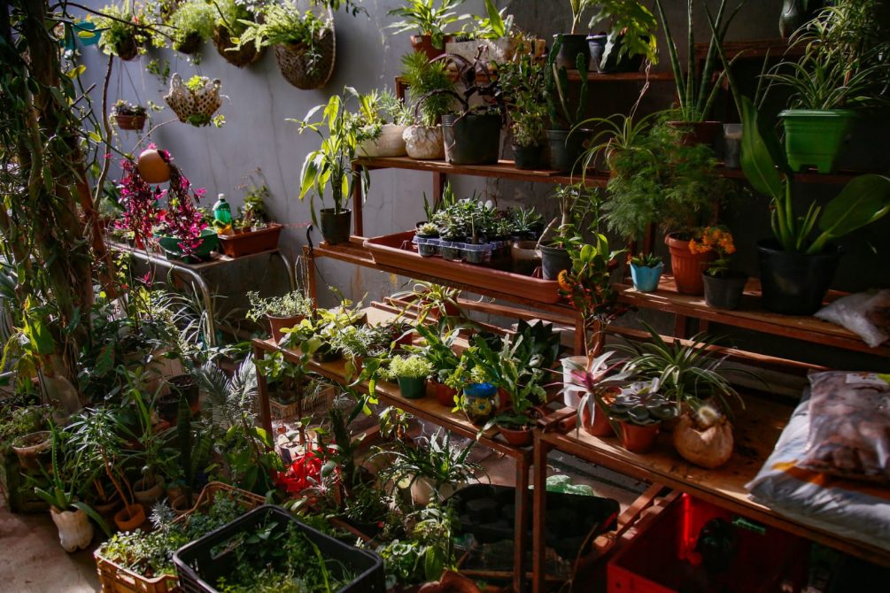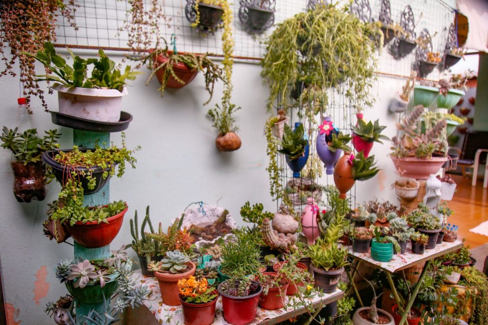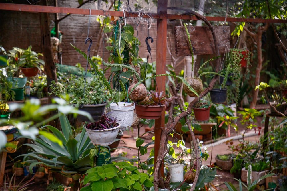Só que nem é isso que mais surpreende. Na varanda da casa, em um terreno de 20X40 m², D. Izolda possui mais de mil espécies de plantas, além de uma horta. Ela não esconde que possui algumas favoritas, como uma orquídea morcego que decora a mesa e alguns vasos que não estão à venda.