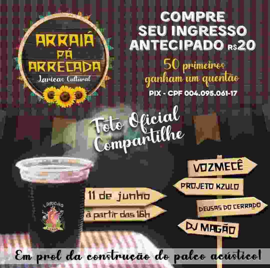 O ‘Arraiá pa Arrecadá’ do Laricas Cultural acontece no próximo sábado, dia 11, com toda energia que tem o local e atrações imperdíveis pra todo mundo curtir muito. A festa é em prol da construção do palco acústico do bar, esse que é um celeiro de novos talentos e espaço de apresentação dos grandes artistas da nossa cena.