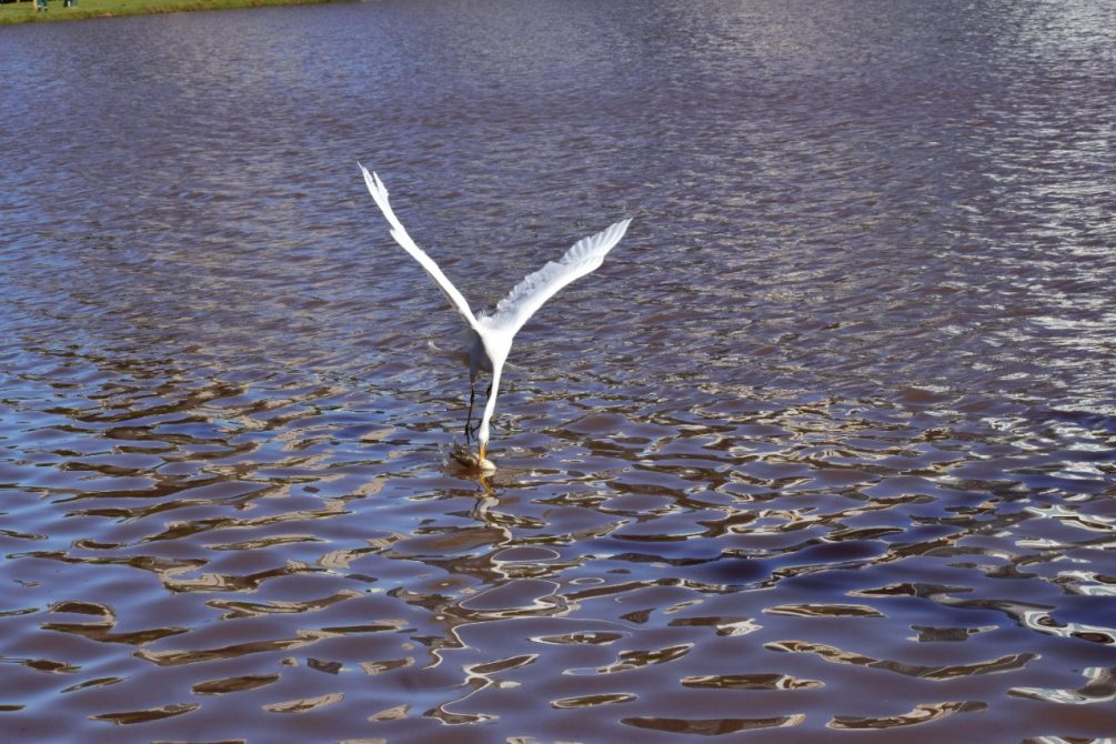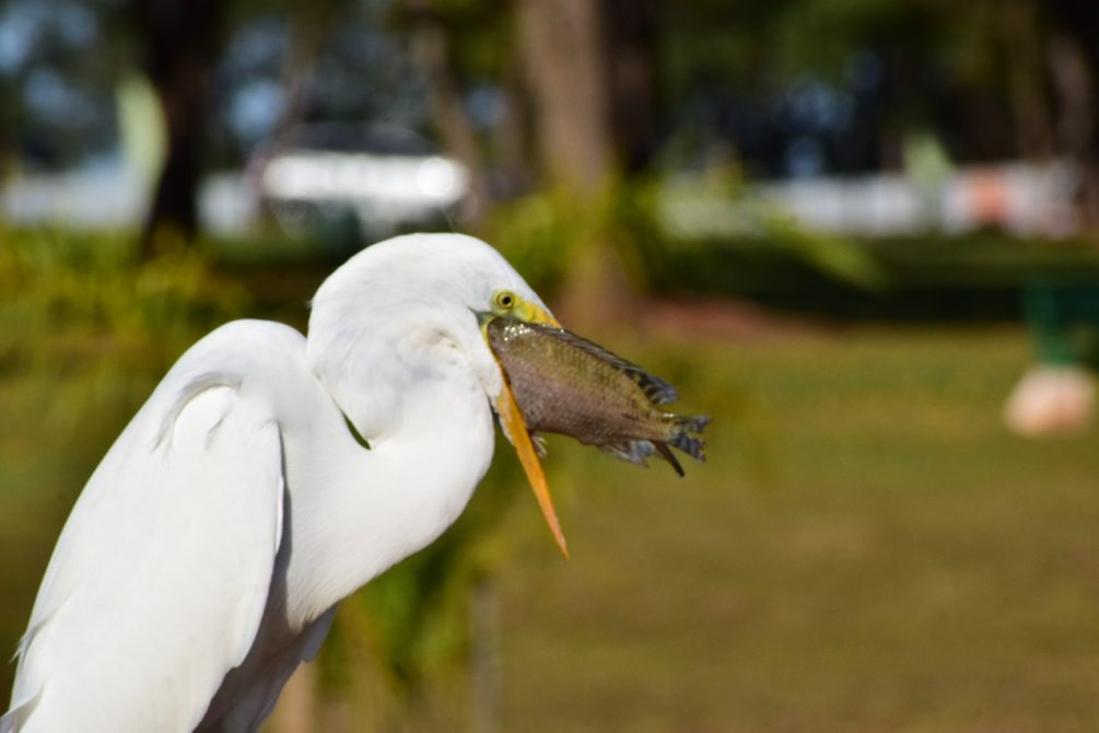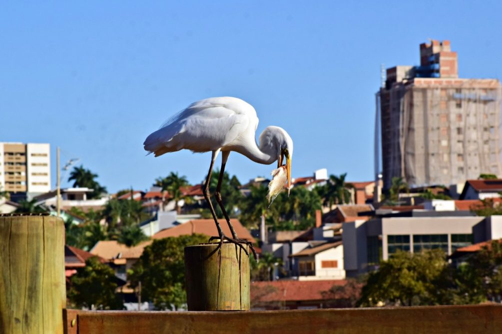 A expressão popular “ter o olho maior que a barriga”, no caso da garça flagrada no Parque das Nações Indígenas, nessa quinta-feira (7), em Campo Grande, poderia ser alterada para “ter o olho maior que o bico”. Isso tudo porque a gulosa pegou um peixe muito maior do que conseguiria comer…resultado? Teve que devolver e pescar de novo, desta vez, um menor e que cabia no seu bico.