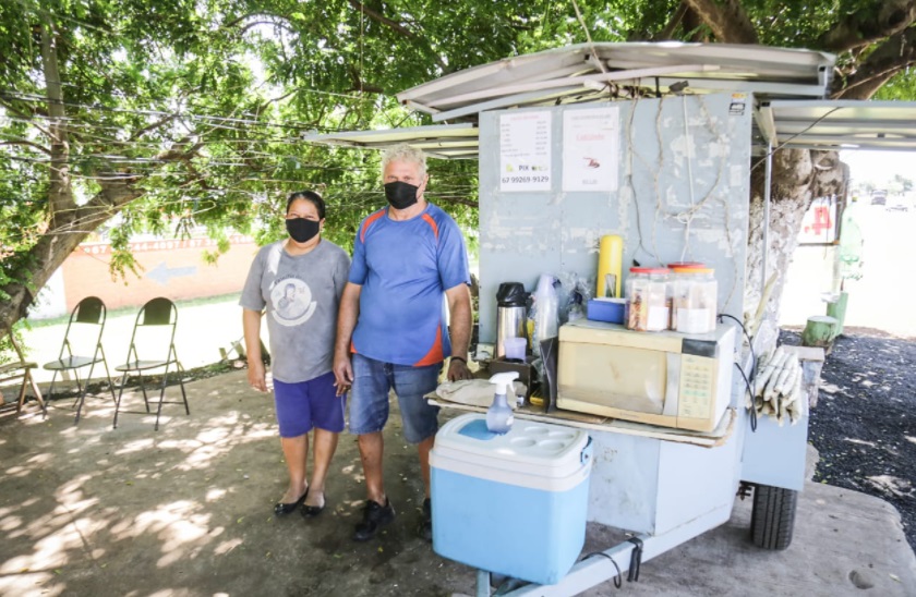 “Foram 11 cirurgias. Aí começamos a vender salgados. Eu sou técnica de enfermagem afastada, trabalhei muitos anos na Santa Casa, o Daniel sofreu essa luxação, ficou um período sem andar, aí a gente começou vendendo pastel. Quando a gente estava aqui há 90 dias, a Prefeitura nos notificou falando que não podíamos ficar aqui, mas aí o Prefeito deixou e estamos até hoje, com tudo certinho”, conta a vendedora.