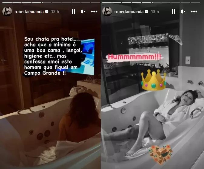 Na publicação errada, Roberta digitou o seguinte texto: “Sou chata pra hotel… acho que o mínimo é uma boa cama, lençol, higiene, etc. Mas confesso que amei este homem que fiquei em Campo Grande”, declarou a artista com frases desconexas em post nas redes sociais.