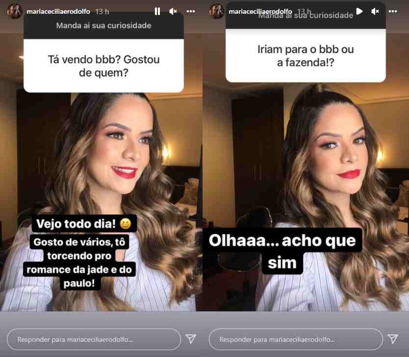 Apesar disso, Maria declarou em suas redes sociais que iria sim para “A Fazenda” ou até mesmo para o Big Brother Brasil. Apaixonada por realities, ela tirou a tarde desta terça-feira (25) para responder perguntas que fãs mandaram através da caixinha do Instagram, e comentou tudo sobre o BBB 22.