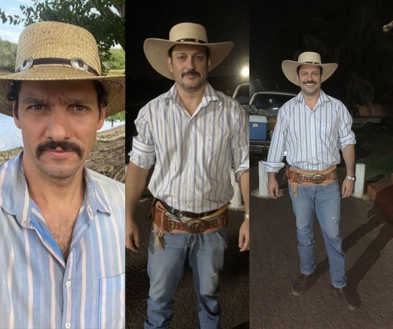 “Sou fã dele, fui criado em fazenda e me vejo muito no papel”, conta o “sósia”, que trabalha como vendedor em uma multinacional de Campo Grande. “Sou sistema pantaneiro: bota, fivela, chapéu e tereré”, completa, sobre as comparações com Tibério.
