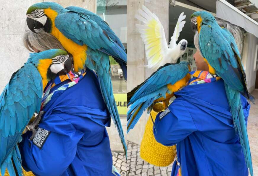 Passeando em Portugal, a empresária campo-grandense Tatiana Ota encontrou uma figura, no mínimo, curiosa: ela ficou encantada ao se deparar com uma senhora caminhando pelas ruas de Lisboa, a Capital do país, com araras e outros pássaros em seu corpo.