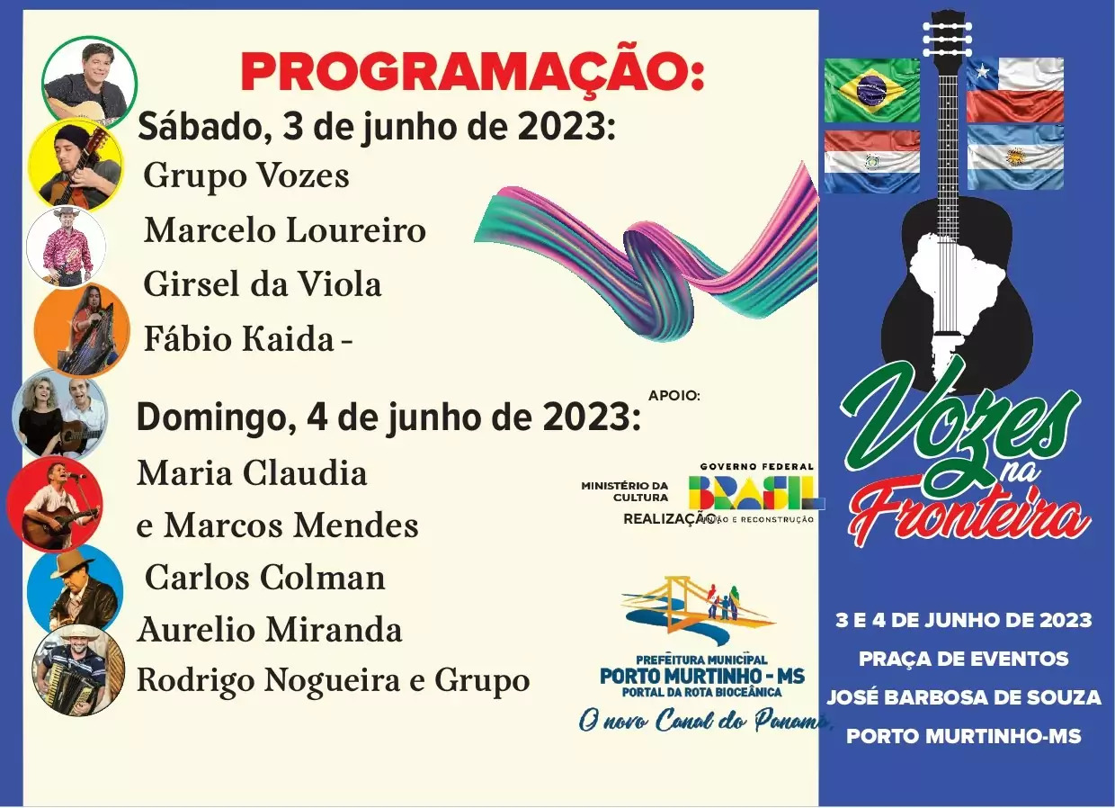 Porto Murtinho, na fronteira com o Paraguai, reúne nos dias 3 e 4 de junho consagrados intérpretes da música regional.