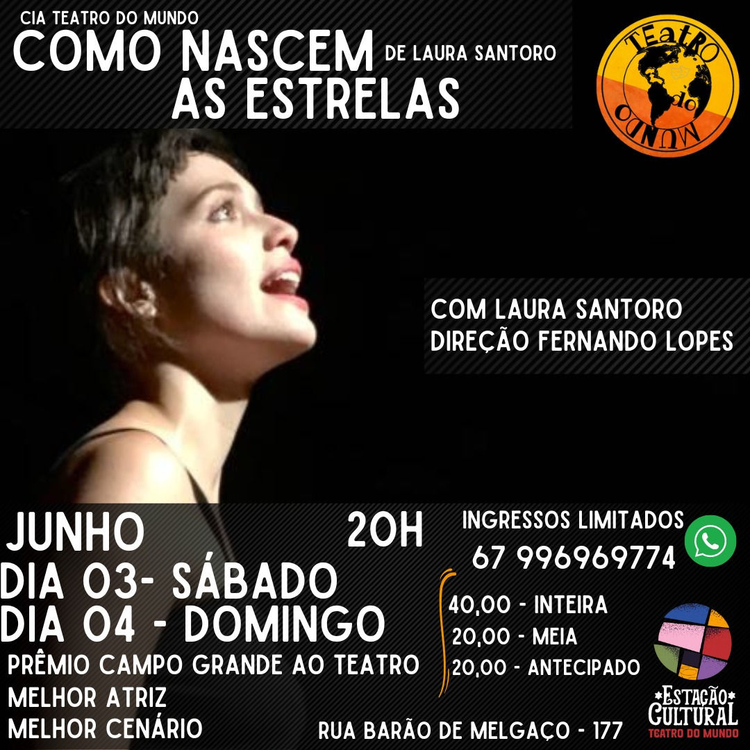 Olha quem “estamos” de volta! A Cia Teatro do Mundo tem o prazer de apresentar o espetáculo “Como Nascem as Estrelas”, de Laura Santoro. Vencedor do 2° Prêmio Campo Grande ao Teatro, na categoria Melhor Atriz e Melhor Cenário.