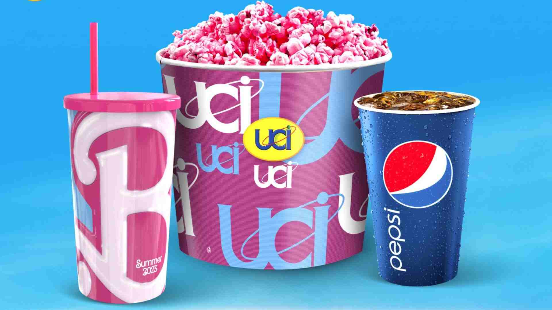 Com pipoca rosa, refrigerante e copo de brinde, inspirado no filme, o combo do UCI custará entre R$70 e R$75 reais.