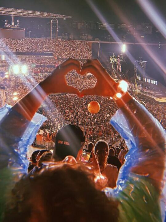 A apresentação começou às 20h45. Nesse momento já não chovia mais, pudemos aproveitar o espetáculo que é viver a experiência de ver todas aquelas luzes, a música e o Chris Martin, que se mostrou um ser humano incrível.