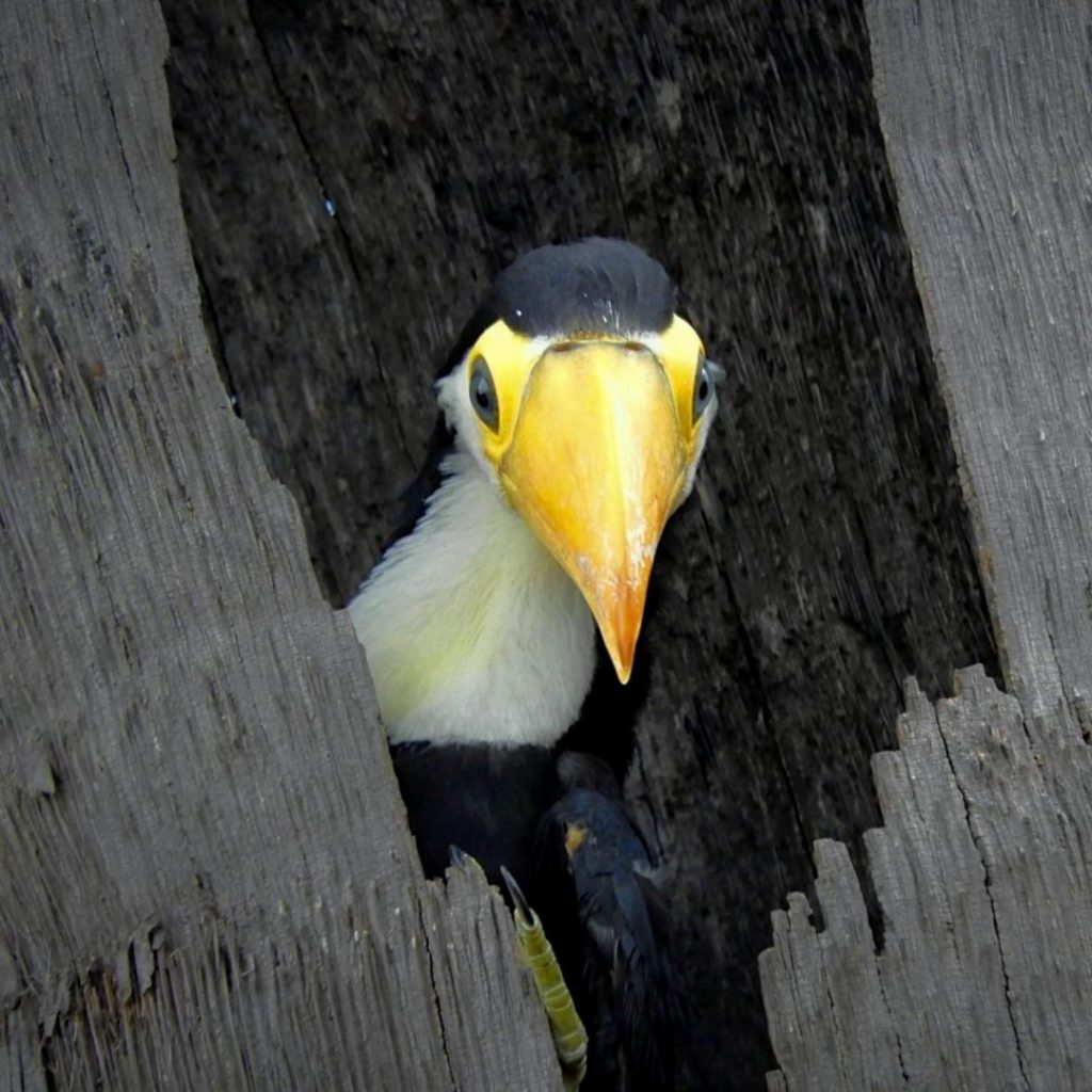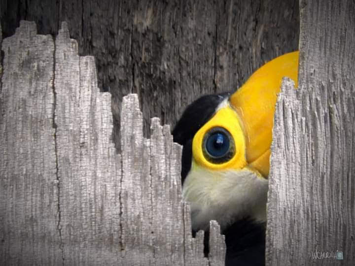 Uma fresta no tronco do coqueiro onde o ninho estava acabou ajudando a fotografar o animal, de nome científico Ramphastos toco. A imagem que mostra um olhinho atento e o bico apontado para cima foi a premiada, mas Wilmar conseguiu capturar a curiosidade do filhote em outros ângulos, inclusive de frente.