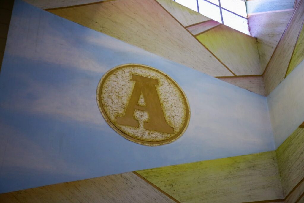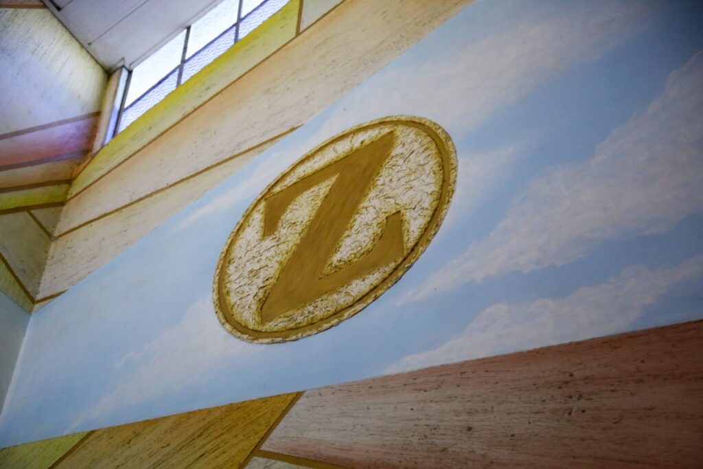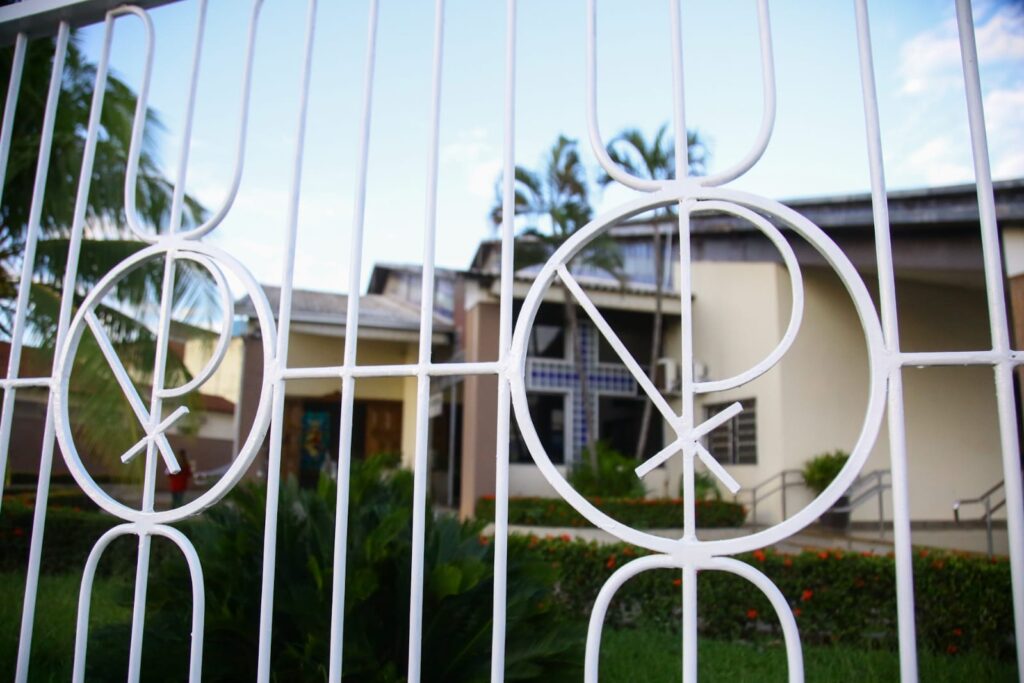 Logo no portão, há um símbolo que se repete no altar. São as iniciais P e X do idioma grego, que podem ser lidas como J. C., as de Jesus Cristo. Elas são um monograma, explica a equipe da paróquia, uma combinação de letras que formam um símbolo.