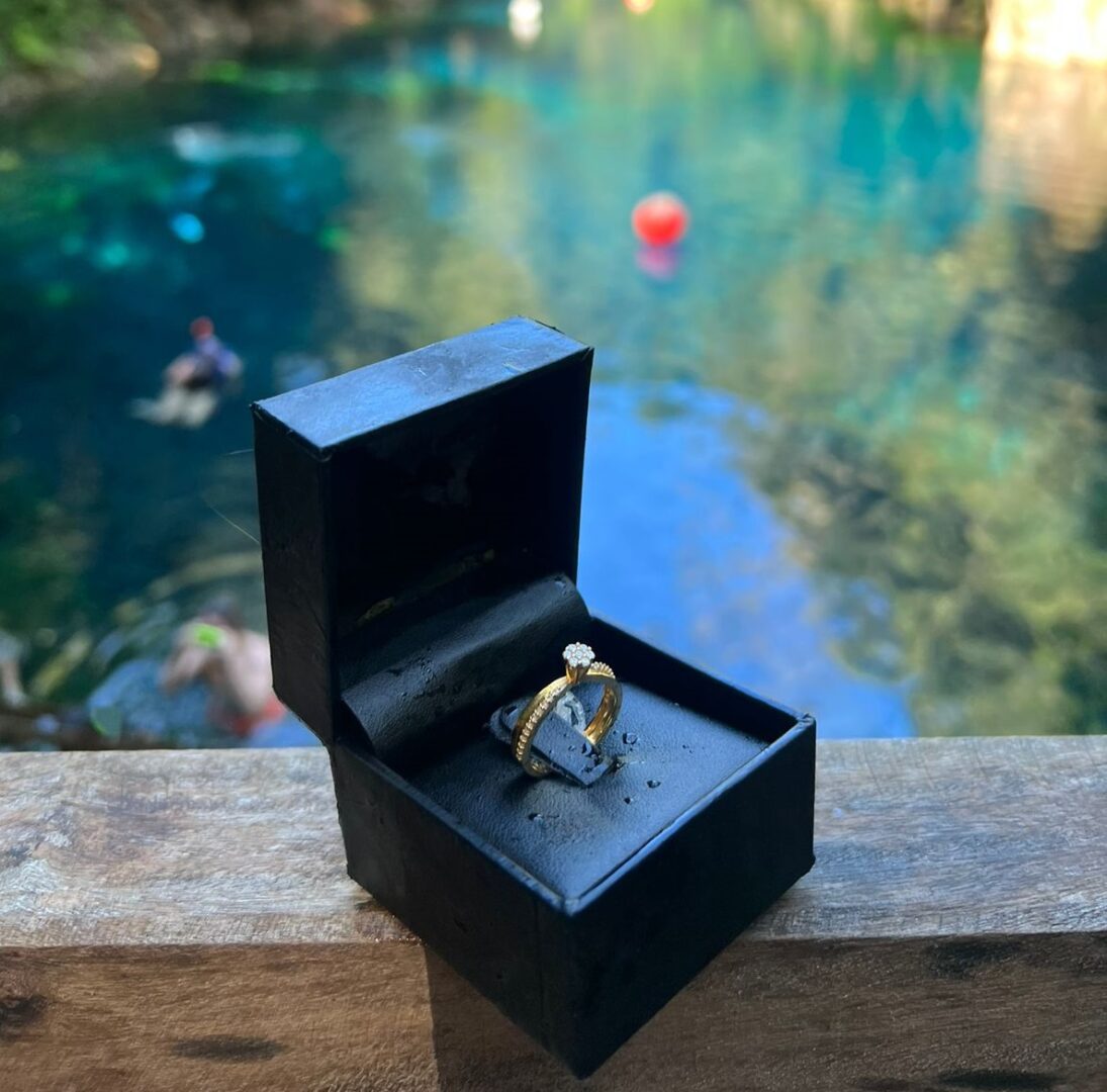 Beatriz de Rodrigues Bispo, de 27 anos, trabalha como pedagoga e decidiu aproveitar o feriado do Dia do Trabalhador (1º de Maio) para visitar a cidade de Bonito e região no fim de semana. O que era para ser uma viagem ao lado do namorado acabou se tornando em dos dias mais importantes da sua vida. Isso porque ela foi pedida em casamento e agora carrega uma aliança na mão. Porém, o mais impressionante foi a forma do pedido, uma vez que ocorreu submerso dentro lagoa na cidade turística.