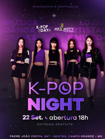 Nesta sexta, acontece o K-Pop Night, que vai reunir k-poppers de CG com música, dança, atrativos, comida e bebida. Haverá ainda lojas fanmade de kpop e produtos asiáticos, expositores locais e atividades como o Random Play Dance, apresentação de canto, dança e DJ de K-pop!