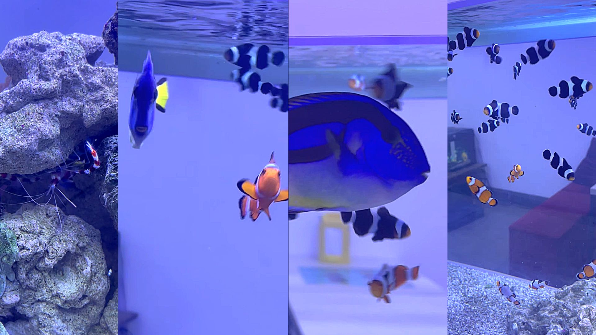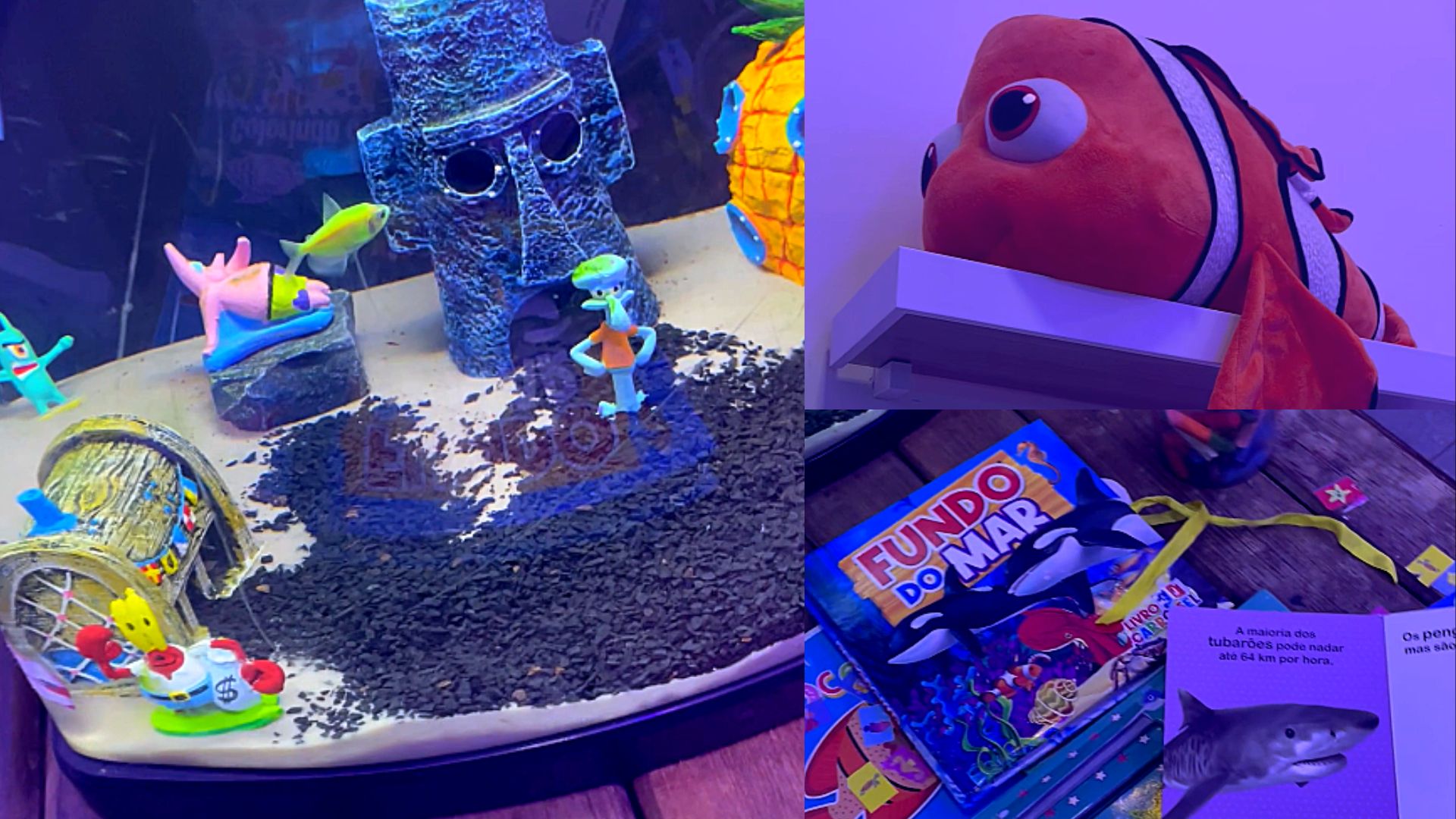 Ao passar pela porta blindex, prateleiras ao lado esquerdo percorrem toda a parede e mostram peixinhos Nemo dos mais diversos tamanhos. Ao lado direito, a frase bem iluminada com a cor azul diz: “continue a nada”. Já ao centro da Oceanic, está o lindo aquário, com dezenas de peixes com o risco característico do nemo, além de cores vibrantes, uma estrela-do-mar, a dory, algas marinhas, entre outros exóticos.
