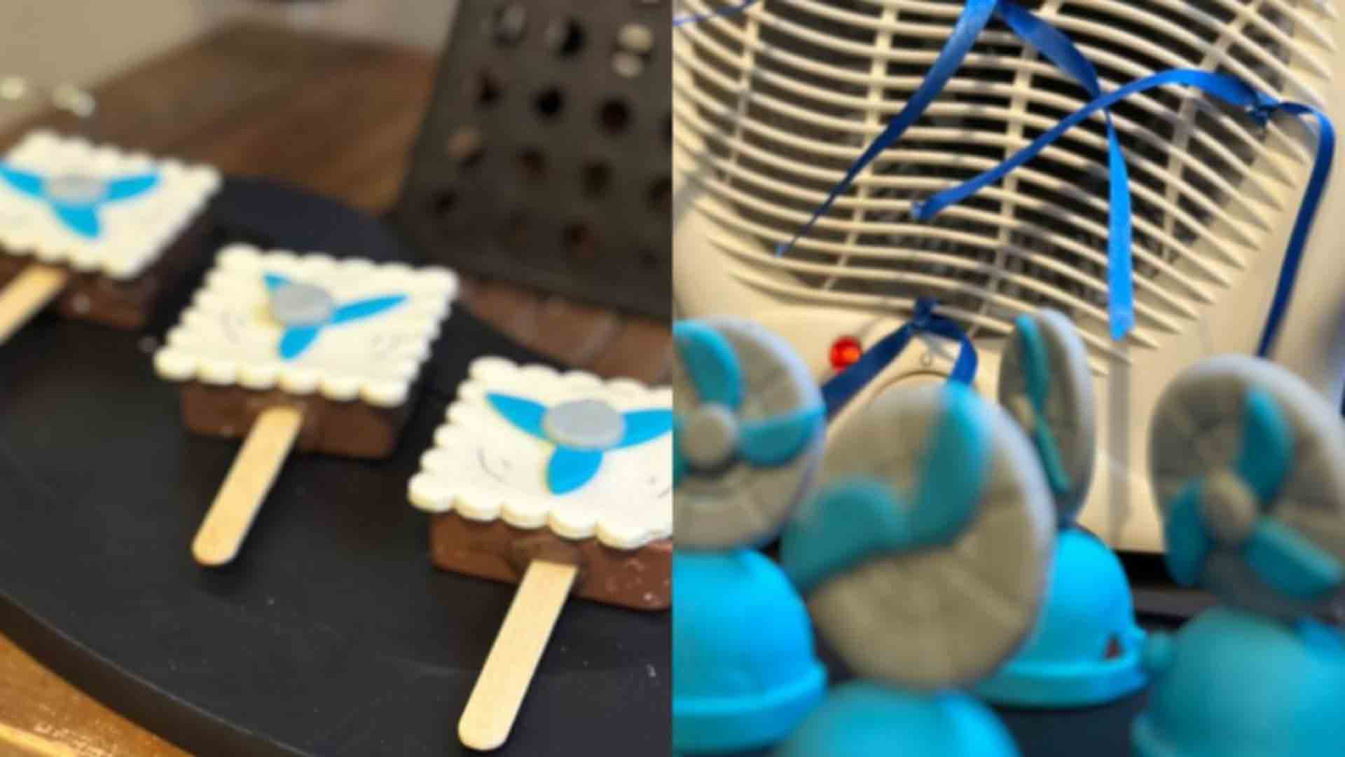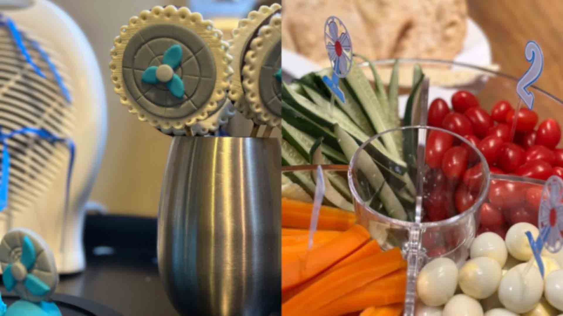 Sob forte onda de calor, “viver embaixo” de um ar-condicionado ou perto de um ventilador é quase um kit de sobrevivência. Mas, para o Frederico, de apenas dois anos, o último objeto, no caso, tem um significado a mais. Chamados por ele de “AVU”, os ventiladores são como se fossem brinquedos, que o menino leva para todo canto. Desta forma, os pais decidiram fazer algo inusitado, com um tema que surpreendeu desde a confeiteira ao pessoal que ajudou na decoração.