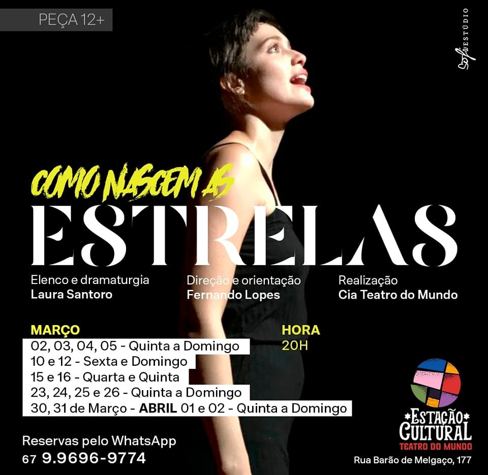 Para quem gosta de teatro, a Companhia “Teatro do Mundo” está com um espetáculo em cartaz. O “Como Nascem as Estrelas” é uma peça escrita e interpretada por Laura Santoro e com direção de Fernando Lopes.