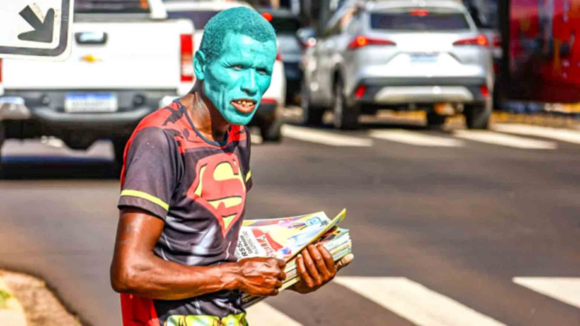 O tio de Maria Eduarda, Cristiano José Soares, de 43 anos, é o “Máscara”. Diariamente, acorda às 4h30. “Eu levanto quando o despertador toca no celular. Toca uma vez só e eu já acordo. Dali eu já faço as coisas e me pinto em seguida, com uma tinta a base d’água. Eu sou um personagem, dizem que sou parecido com ele”, contou.