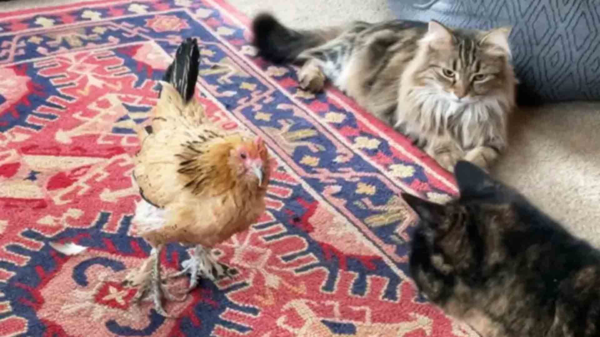 Naquele momento, tentou colocar o pintinho de volta com a mãe galinha, mas, ela não aceitou. Foi quando Darwin a levou para dentro, colocou-a sob uma lâmpada de aquecimento e ensinou-a a comer e beber.