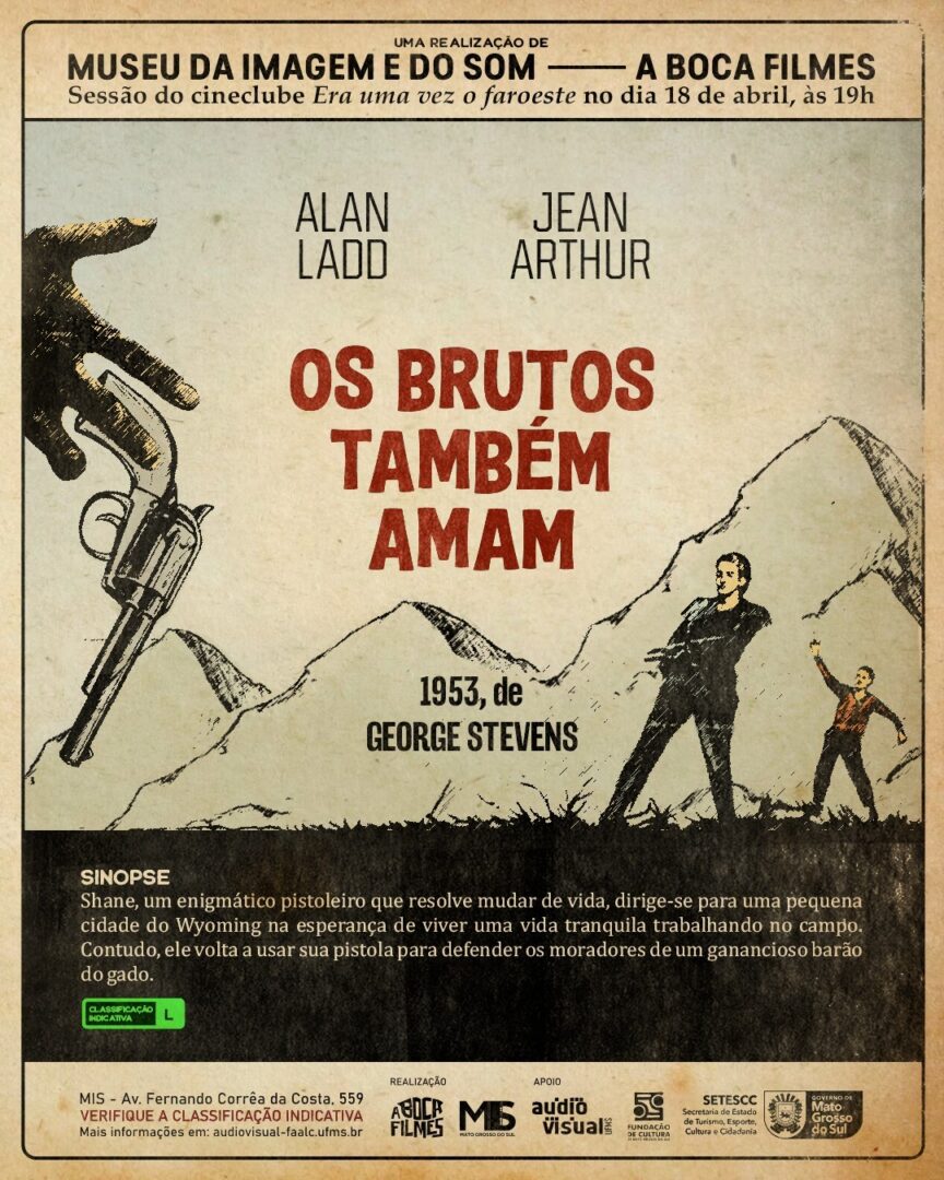 O filme “Os brutos também amam”, que remete a era de ouro do “Western”, será exibido nesta terça-feira (18), de forma gratuita, no MIS-MS (Museu da Imagem e do Som de Mato Grosso do Sul), em Campo Grande.