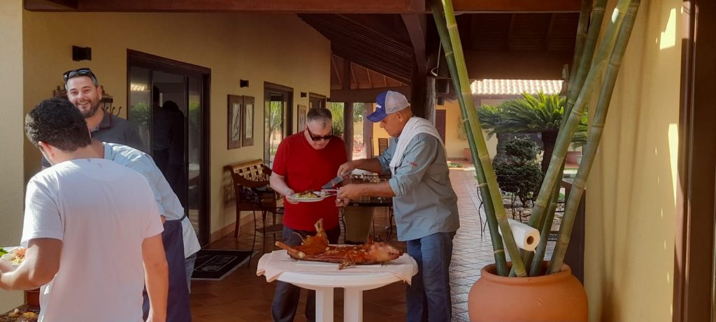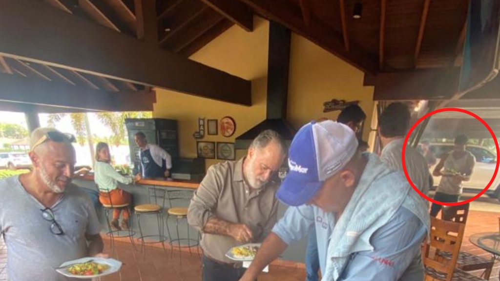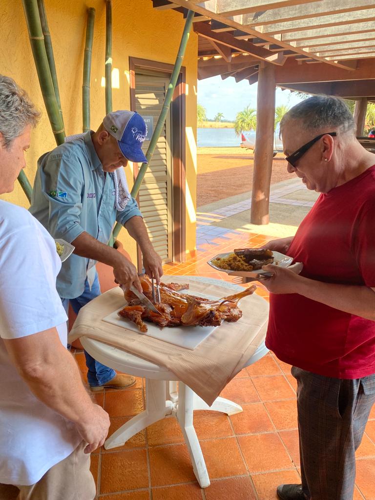 Caseiro na propriedade há 18 anos, Ricardo Vieira Dias não teve como não reparar no prato farto de Cauã. “Pensa no pratão! Ali o bichinho come!”, revelou ao MidiaMAIS. Nas fotos enviadas por ele, o ator aparece ao fundo e, à frente, está Tony Ramos pegando um pedaço do assado.