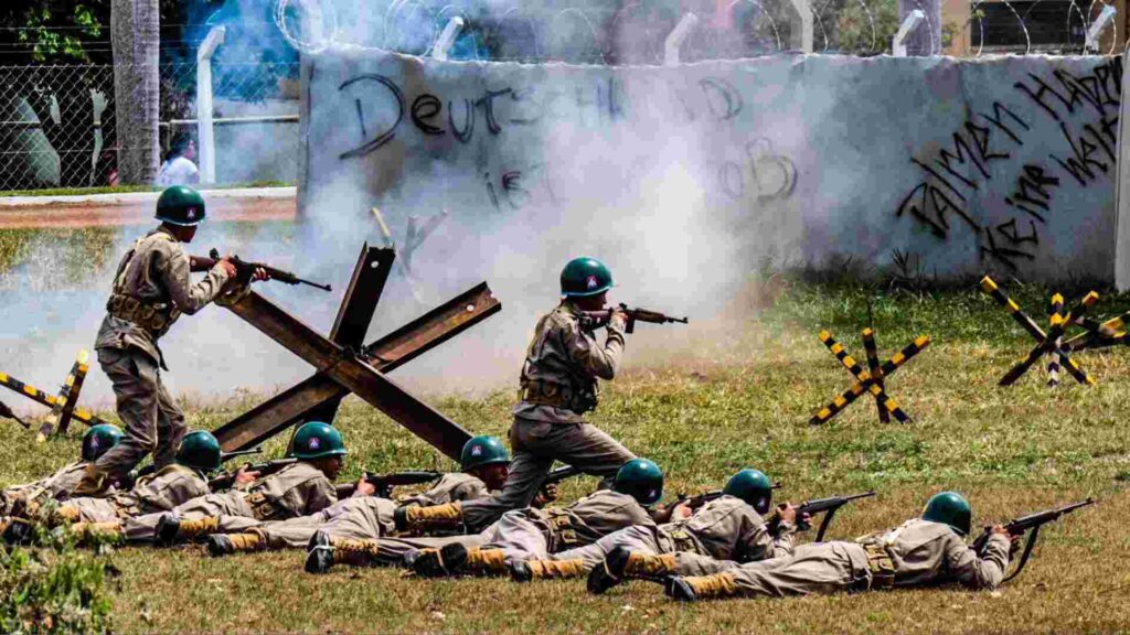 O CMO (Comando Militar do Oeste) junto com o 9º BE CMB (Batalhão de Engenharia de Combate) realizaram um momento histórico em Aquidauana, nesta sexta-feira (27), ao reproduzirem o envio de tropas sul-mato-grossenses na Segunda Guerra Mundial. A simulação faz parte da comemoração aos 80 anos da FEB (Força Expedicionária Brasileira).