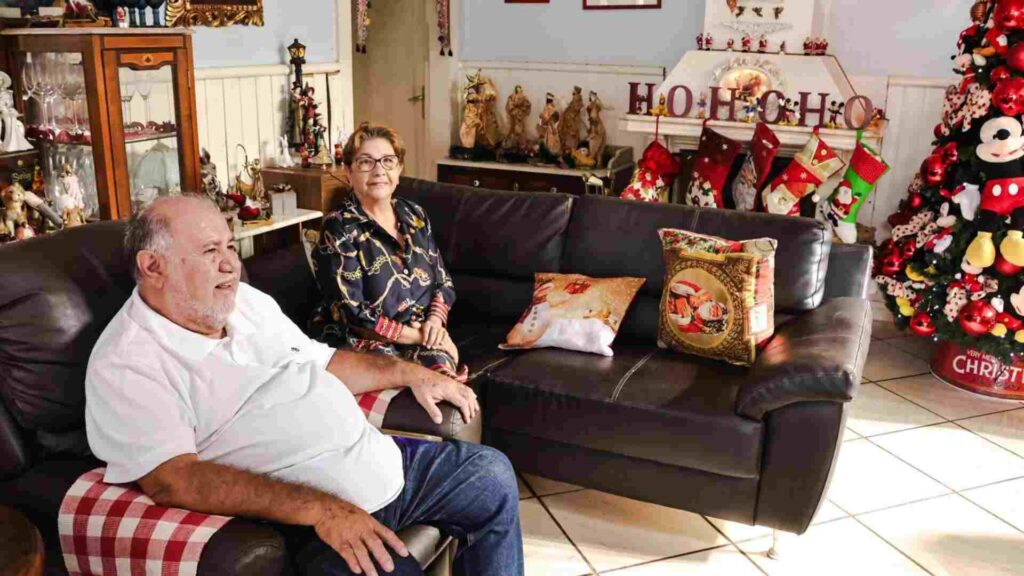 Marido de Elizabeth, o arquiteto e urbanista Júlio César Diniz, 66 anos, conta com orgulho que a decoração foi toda pensada pela esposa. “A decoração desse ano é mérito dela. Tudo foi ela que fez, e não acha nada igual por aqui”, comenta.