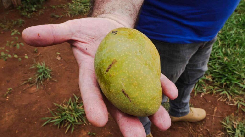 “Nós doamos sempre para os vizinhos, para a conveniência, que são parceiros nossos. Nesse ano, as mangas começaram a ficar maduras há umas três semanas atrás, e o período vai até o fim de novembro”, explicou.