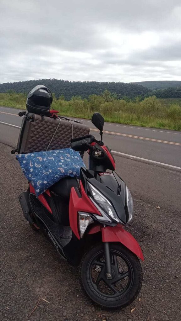 Conforme Juliano, a moto que o fez realizar o sonho de viajar por aí só com uma mala também o ajudou a sair da depressão. “Anos anteriores, eu andava depressivo e frustrado com a vida. Depois, comprei a minha Honda Elite 125 e agora fico de olho no calendário escolar para ver os feriados e férias e poder viajar de moto”, detalha.