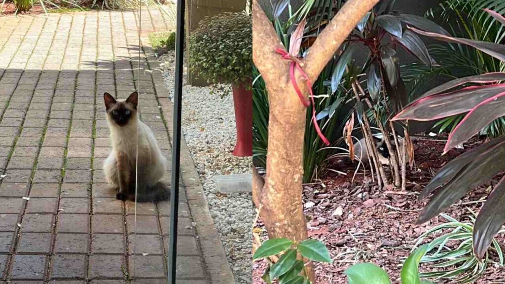 A gata siamesa conseguiu ser pega e adotada por uma moradora do condomínio. Ela agora se chama Mimosa e convive com mais duas gatinhas.