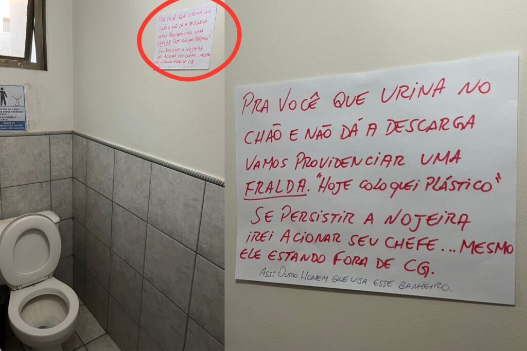 Já no escritório, no bairro Jardim dos Estados, a paciência tá zero com mijão e por isso o coleguinha não se conteve ao pedir respeito. A reportagem do Jornal Midiamax conseguiu localizá-lo e ele disse que foi só monitorar que, rapidamente, identificou a pessoa e, em seguida, decidiu colocar o recado no banheiro.