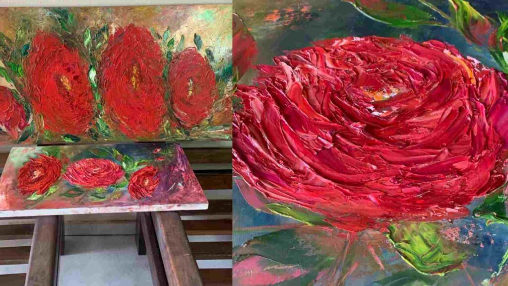 “Faz 43 anos que pinto com espátula, só que tive um grande intervalo por conta de situações da vida mesmo. Agora, após os 60 anos, achava que não tinha mais como, por estar enxergando mal e ocupando o tempo cuidando da minha neta. Mas, de repente, uma das minhas filhas me presenteou com um curso e tudo mudou. Não sinto mais solidão como antes”, afirmou ao MidiaMAIS a artista.