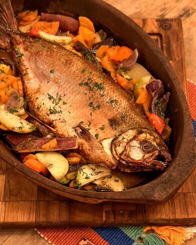 E justamente neste processo de imersão cultural nasceu o prato principal, cheio de peculiaridades e processos, tornando-o também um produto de orgulho para Mato Grosso do Sul e o prato mais pedido do restaurante.