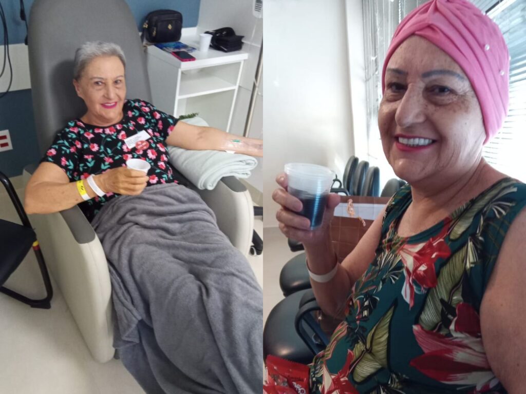 “Eu estive o tempo todo maquiada e sorrindo para o povo da oncologia. Eles se admiravam comigo, porque estava sempre pra cima sorrindo e com batom. Quando fiquei careca, usava esses turbantezinhos e bola para frente, sempre animada e Jesus ao meu lado e Maria me cuidando. Eu ia dirigindo, só minha irmã que me acompanhava, mas, não dirigia, então todos sempre ficavam admirados com a minha força, só que era a minha fé”, finalizou, contando que fez 14 sessões de quimioterapia e 15 de radioterapia.