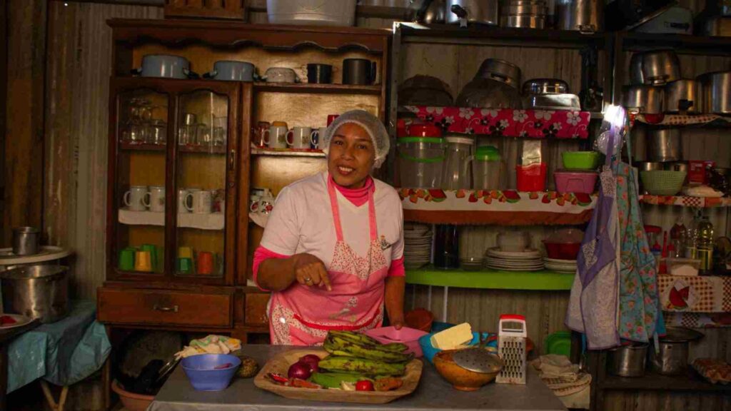 “Aqui em Corumbá, por exemplo, conhecemos Candelária Lemos, que aprendeu com sua mãe, dona Arialba, a preparar a saltenha boliviana — receita que ela mesma adaptou, com menos açúcar e mais pimenta. Trabalhando numa padaria em Coxim, Dona Arialba manteve a tradição por 40 anos e, agora, vê sua filha dar continuidade ao legado da receita”, conta Elis Regina.
