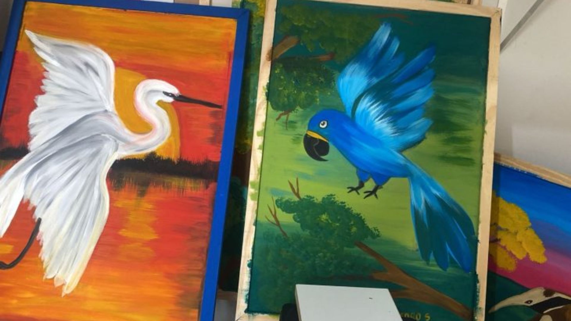 Ao todo, a exposição reúne 15 obras criadas por sete crianças artistas PCDs (Pessoas com Deficiência), que desenvolveram os trabalhos durante as aulas de arteterapia na Clínica Ressignificar. Os quadros revelam a sensibilidade e o talento desses jovens artistas ao retratar a fauna pantaneira.