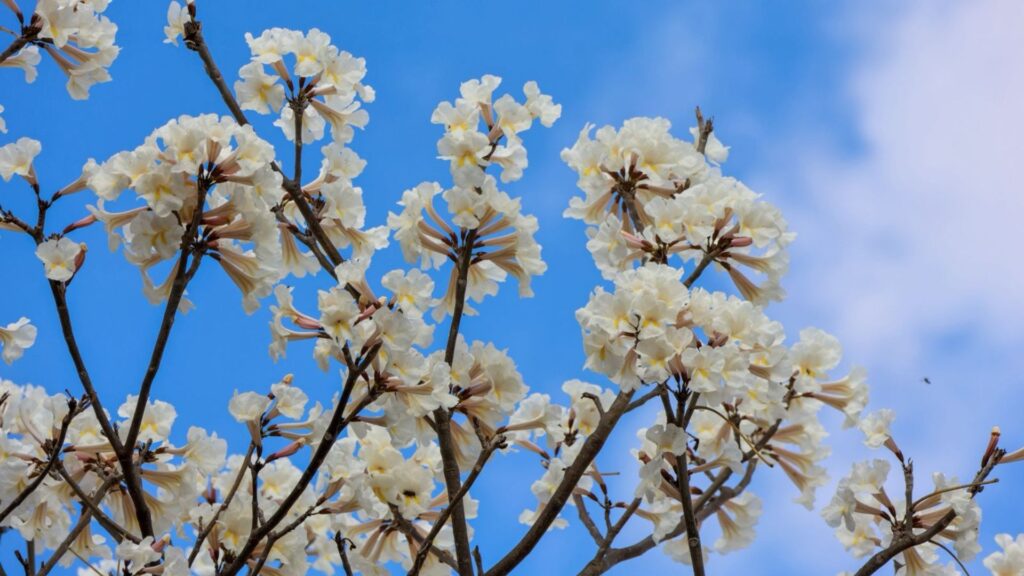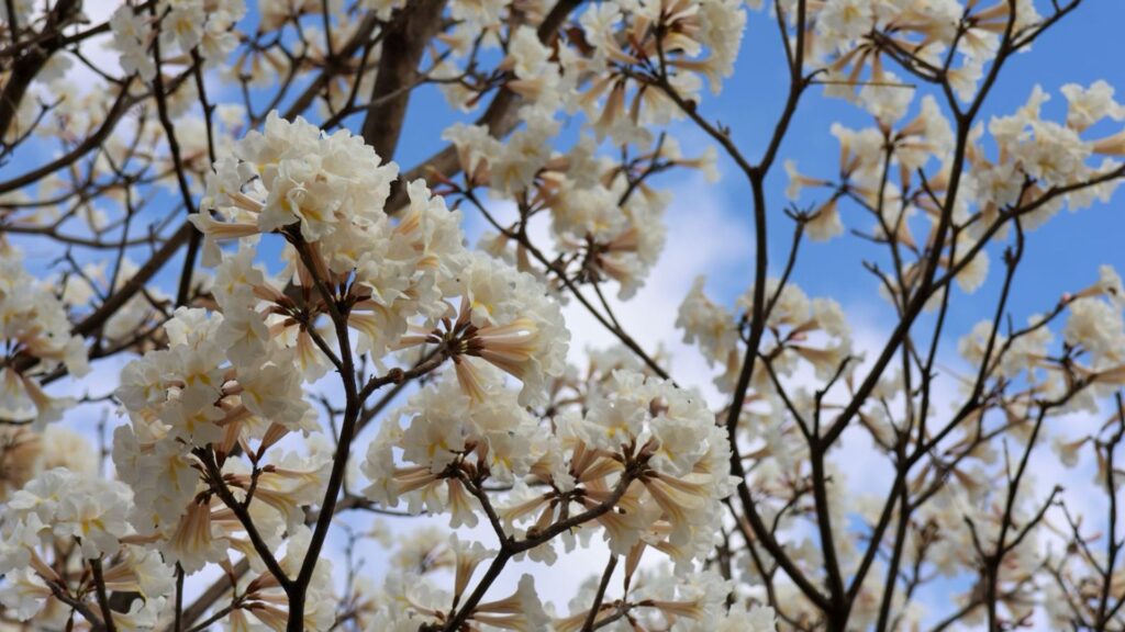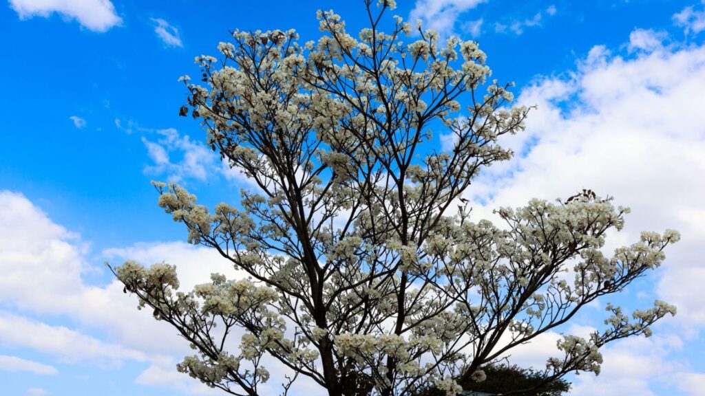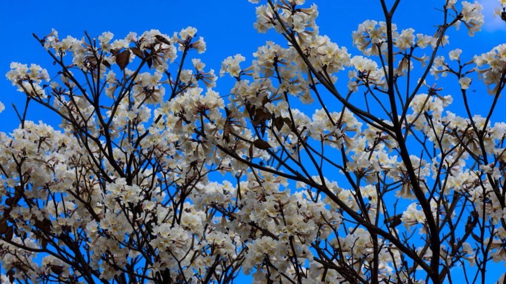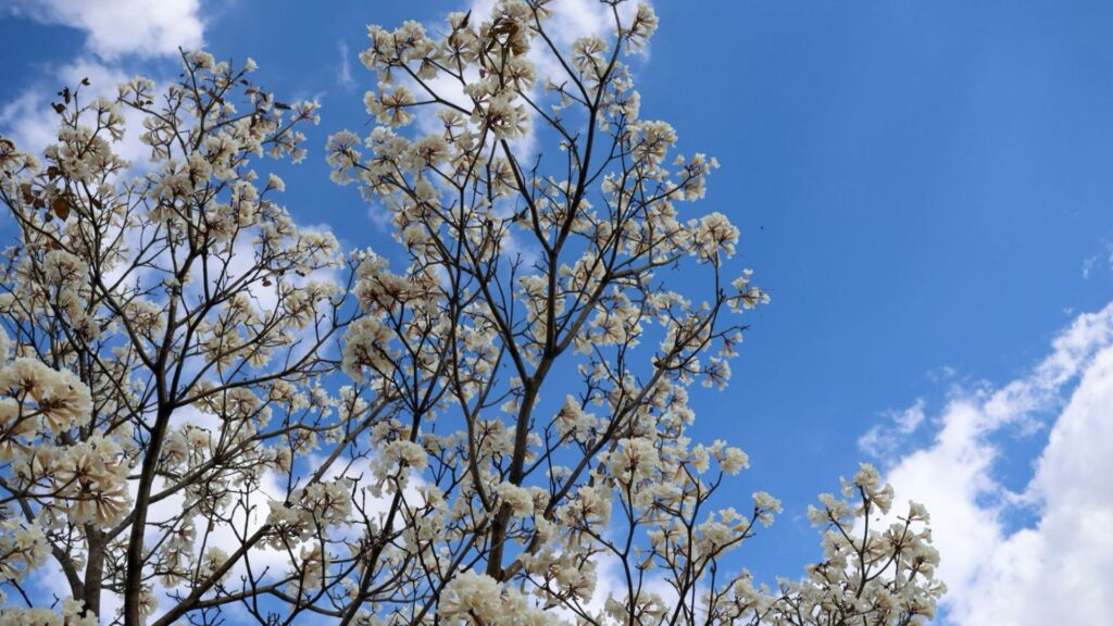 Assim como em 2024, a florada dos ipês-brancos se antecipou este ano. Isso porque, normalmente, as árvores desta espécie florescem entre setembro e outubro.