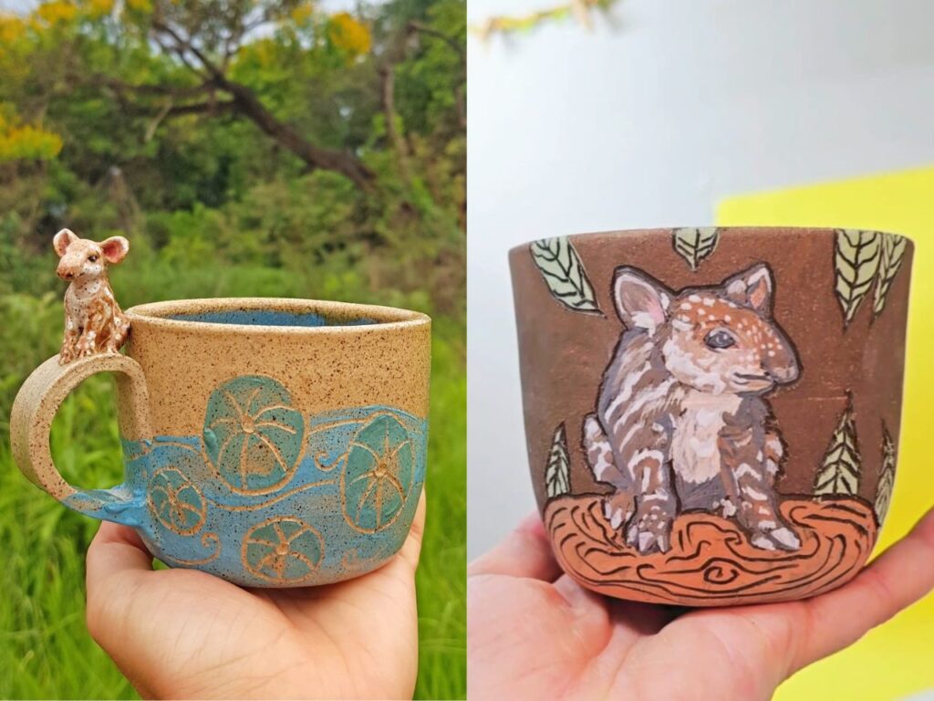 Marina Torrecilha Cardoso, de 35 anos, é uma ilustradora e ceramista que ficou famosa, em Campo Grande, ao mostrar os seus trabalhos com capivarinhas feitas à mão em canecas, jogos de xadrez e cumbucas, desde o ano de 2020. No entanto, dois anos depois ela expandiu a fauna e antas passaram a estampar os seus trabalhos também, animal que considera fascinante e símbolo de inteligência e força.