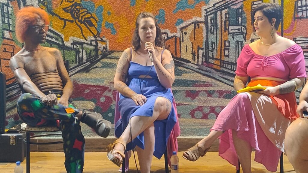 “Na Parada LGBT eu conversei com a Marina e eu achei muito interessante a proposta dela. Eu tinha acabado de me mudar para cá, aí eu vi o projeto e achei muito bacana. De mulheres LBT e eu não tinha visto nada nesse sentido ainda. Então, aí eu estava esperando, ansiosa para ver o projeto”, comentou outra participante do evento, Inah Maria.