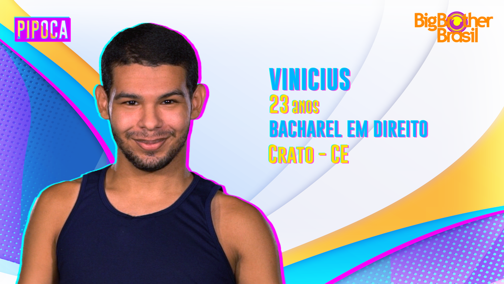 Vinicius é bacharel em Direito, tem 23 anos e nasceu em Crato, no Ceará. Trabalha no restaurante de sua família e faz vídeos de humor para as redes sociais. Não pretende advogar.