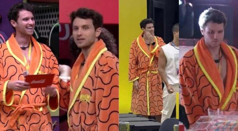 Lucas virou meme por não tirar o roupão do líder. Além de usar o dia inteiro o roupão, ele usou na festa de sábado, no almoço do líder e inclusive ontem durante a eliminação, o estudante de medicina estava usando a peça de roupa.
