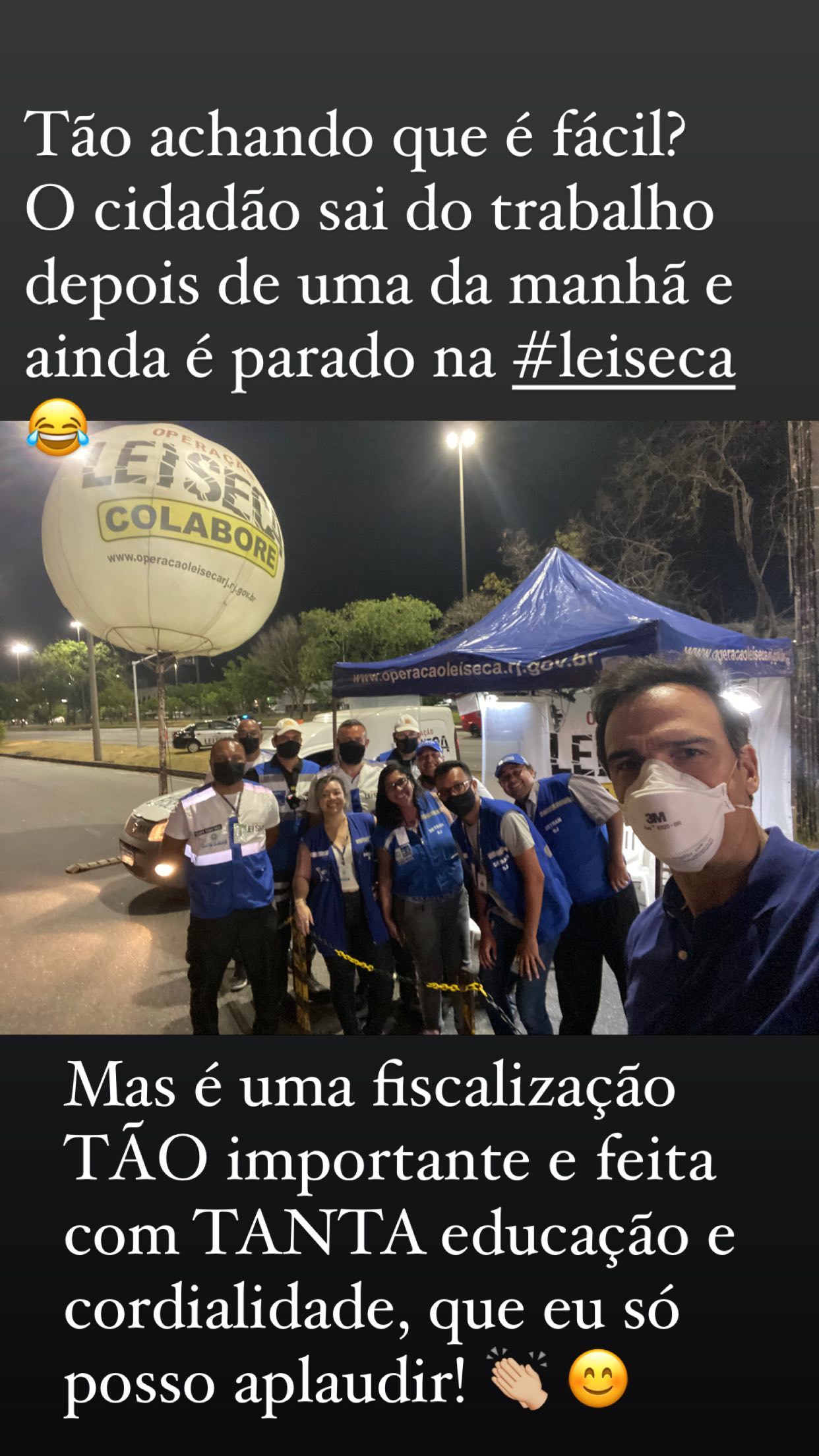 “Estão achando que é fácil? O cidadão sai do trabalho depois de 1h da manhã e ainda é parado na Lei Seca. Mas é uma fiscalização tão importante e feita com tanta educação e cordialidade, que eu só posso aplaudir!”, escreveu ele.
