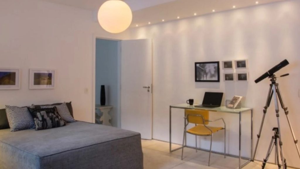 O segundo dormitório era o de Benício e Joaquim Huck. Ele também tem closet e hidromassagem, mas se diferencia por ter uma varanda. A terceira suíte é semelhante e a quarta é menor, com apenas um armário.