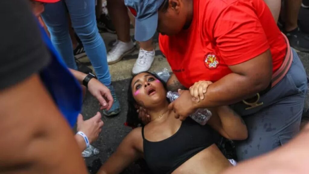 Com o calor, a própria cantora chegou a distribuir água aos foliões. Mas isso não impediu que houvesse desmaios entre o público, o que levou à interrupção do bloco antes do previsto. O UOL presenciou ao menos duas pessoas sendo socorridas.