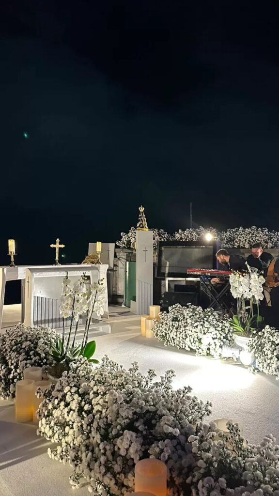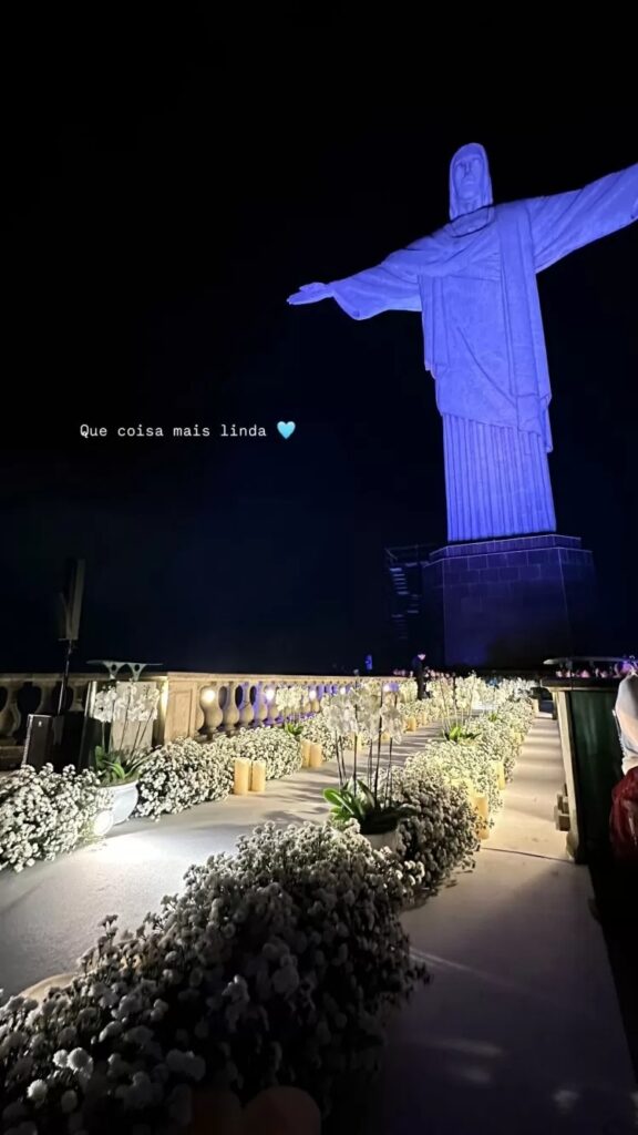 A princípio, o casal ainda não compartilhou registros da cerimônia. Contudo, alguns convidados se precipitaram e mostraram alguns detalhes. Em suma, após a renovação aos pés do Cristo Redentor, todos seguiram para uma festa luxuosa no Copacabana Palace.