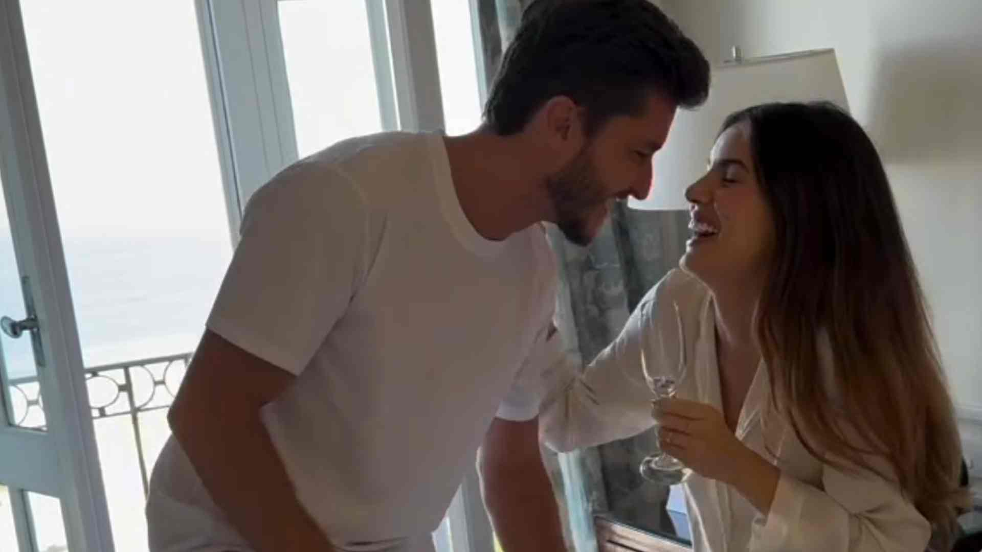 Então, em um vídeo compartilhado nas redes sociais, é possível ver o momento que eles cortam um bolo juntos em cima da cama e se deparam com um recheio rosa. Emocionados, o casal celebrou com um beijo.