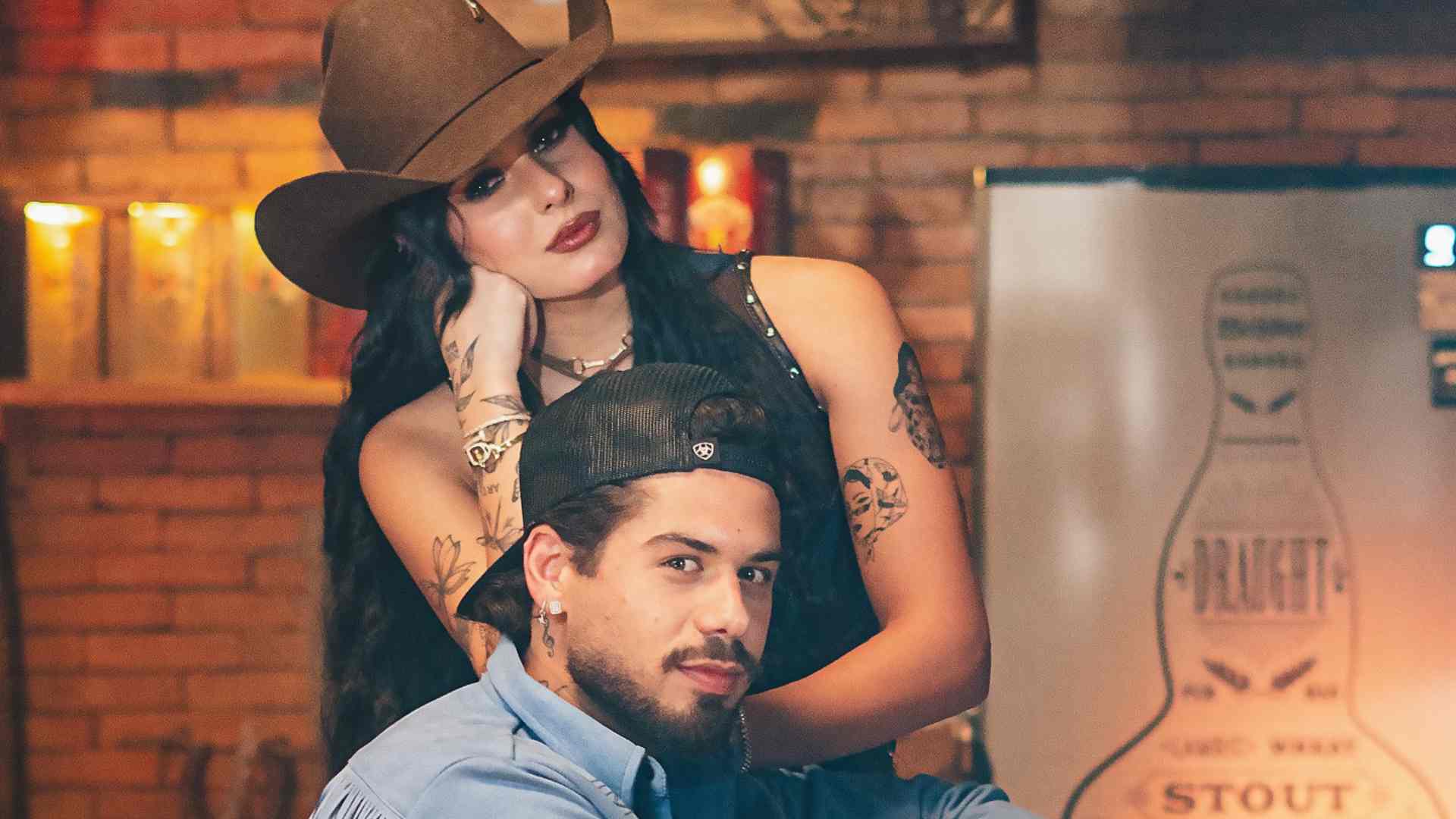 Então, na sequência, ele publicou uma imagem em que a Boiadeira aparece sentada em um balcão, enquanto ele posa apoiado nas pernas dela. “Coloca o chapéu que lá vem pedrada”, legendaram eles.