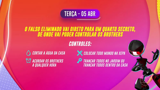 “Assim que o mais votado se despedir de seus companheiros de confinamento, na próxima terça, dia 5, ele irá, na verdade, para um quarto secreto e terá a oportunidade de brincar de Big Boss por algumas horas”, diz comunicado da Globo enviado à imprensa explicando a dinâmica.